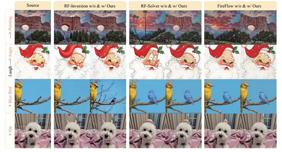 两者结合,使RF模型在反演阶段同时具备数值稳定性与语义可控性,从而显著提升可控编辑任务的可靠性。